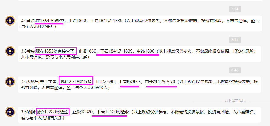 3.6金市健言:黄金已23连胜1853直接空!纳指12280空!天然气2.718多