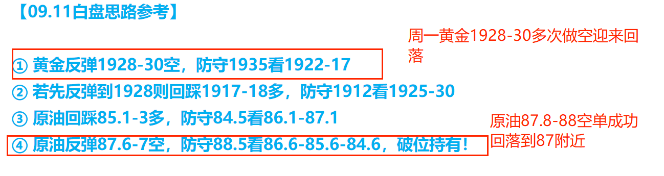 ④ 原油反弹88-88.1空,防守88.8看87.1-86.1-85-84破位持有!