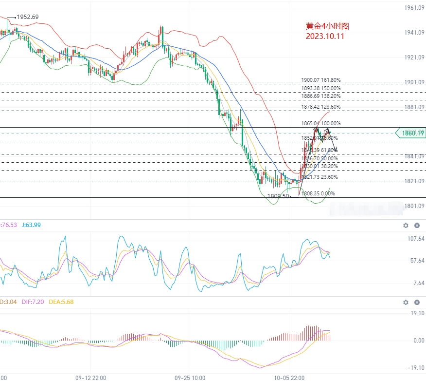 技术面上来看昨日日线收了一根阴线十字星,今日回调修正的可能性较大,布林带大开口,KDJ指欲形成金叉,大趋势震荡偏弱,中线阶段性上行。4小时图中来看整体走势跟我们预期较吻合,布林带大开口上行,KDJ指标平缓运行。小时图中来看布林带开始开口,KDJ指标形成死叉,昨日价格如期小幅回调修正后仍以上行为主,今日关注回调修正情况,下方支撑关注1852/1843/1834一线,上方压力关注1870/1880/1898一线.