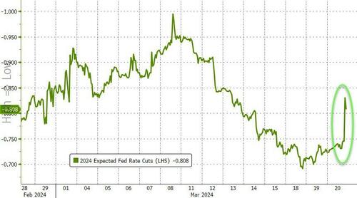 另外,从点阵图的分布来看,对利率的预测值也整体有所上移,认为今年应降息四次或以上的人数从此前的5人减少至1人,这表明官员们对于降息的冲动是在下降的。