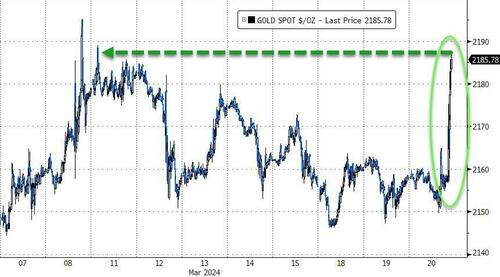 现货黄金价格隔夜史上首度突破2200美元/盎司关口,最高触及2222.9美元/盎司,再创历史新高。