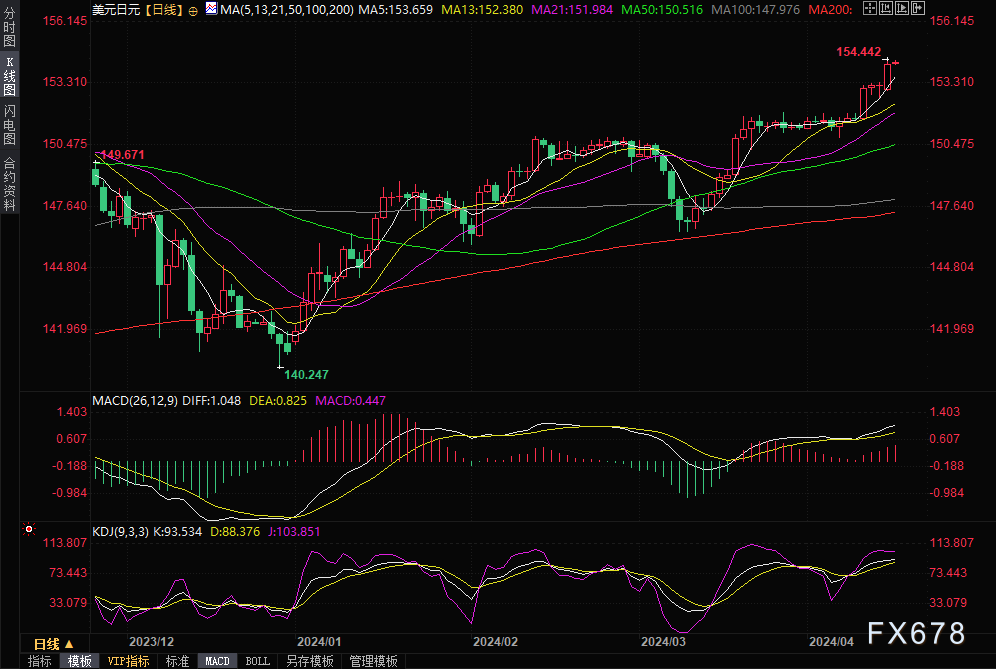 市场之前一直在关注152的水平,认为这可能会促使日本官员进行干预,但迄今为止还没有明确的迹象表明会有这样的举动。根据美国商品期货交易委员会(CFTC)的最新报告,对冲基金已将做空日元的押注提高至2018年1月以来的最高水平。