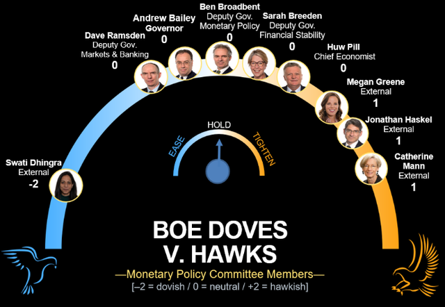 在上次会议上几乎一致通过后,外界认为在本次会议上有可能出现7:2的分歧,即多数人支持维持政策不变,但副行长拉姆斯登被认为最有可能加入丁格拉的鸽派阵营,前者在最近的一次演讲中表现出鸽派倾向。