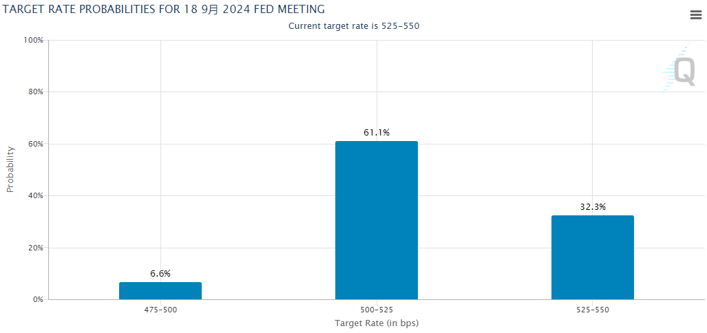 芝商所的FedWatch工具则显示,市场认为美联储在9月会议上降息至少25个基点的可能性约为68%,较上一交易日继续略有上升。
