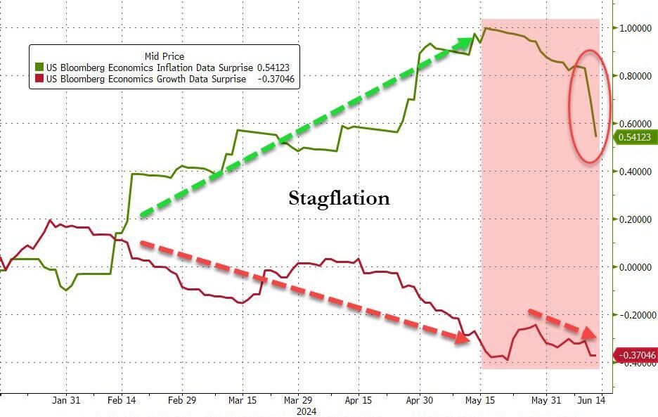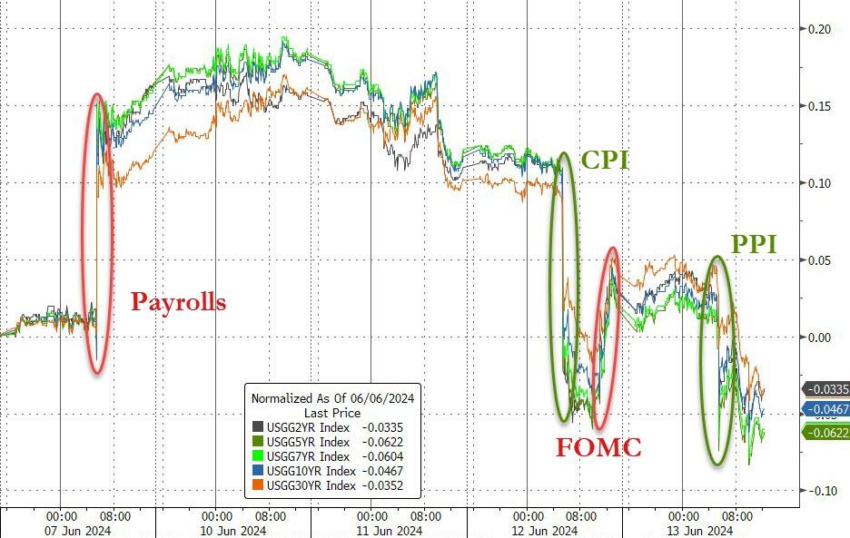 美国劳工统计局周四公布的数据显示,与前一天刚刚公布的CPI一样,5月PPI的四组关键指标——总体与核心PPI的同比和环比指标也均无一例外低于市场预期!