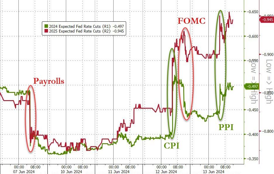 从利率市场的最新定价看,交易员目前美联储年内或有望降息49.7个基点,换言之——已基本完全定价了两次降息。人们似乎并不相信美联储6月点阵图所显示的年内降息一次的中位数预测!