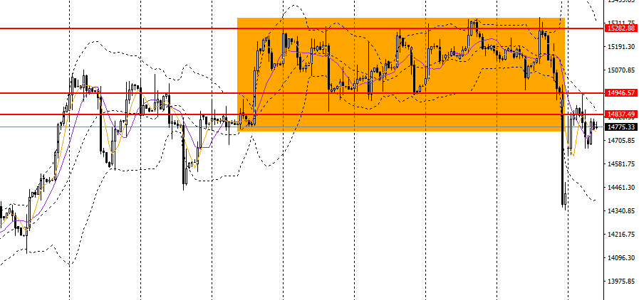 A50收长阴线,徘徊于5日均线附近,日线RSI位于50左右,4小时一度逼近15000大关,但未能彻底上破,短线预计将维持高位震荡格局,可保持观望。