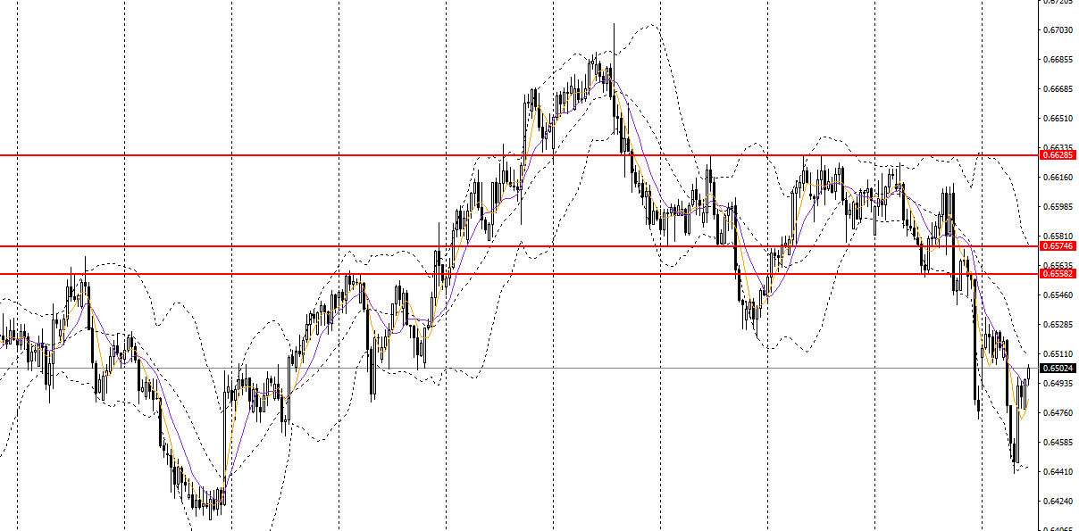 澳美探底回升,创下1个多月新低,承压于5日均线,4小时大幅反抽,可暂时观望,如于0.6530附近承压可继续进空。