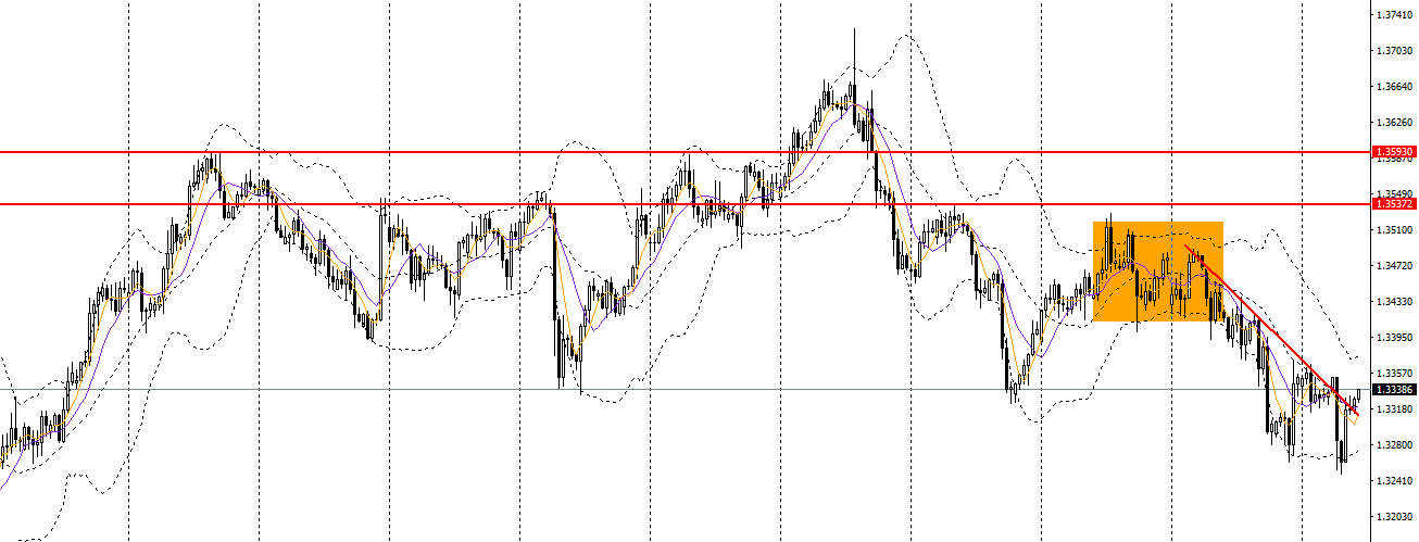 镑美收十字阴线,刺破前低,日线RSI仍位于50下方,4小时空头动能减弱,空单建议离场,稳健者可保持观望。