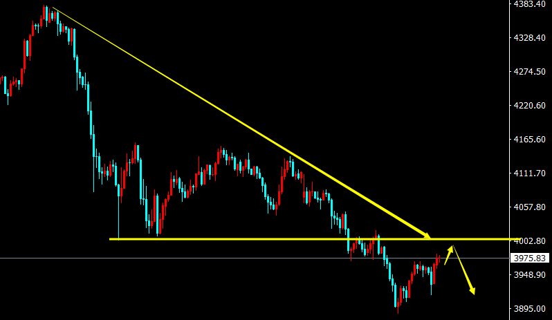 【周三操作】:黄金日内反抽于3995-4000附近做空,目标3950-30附近,损4015.