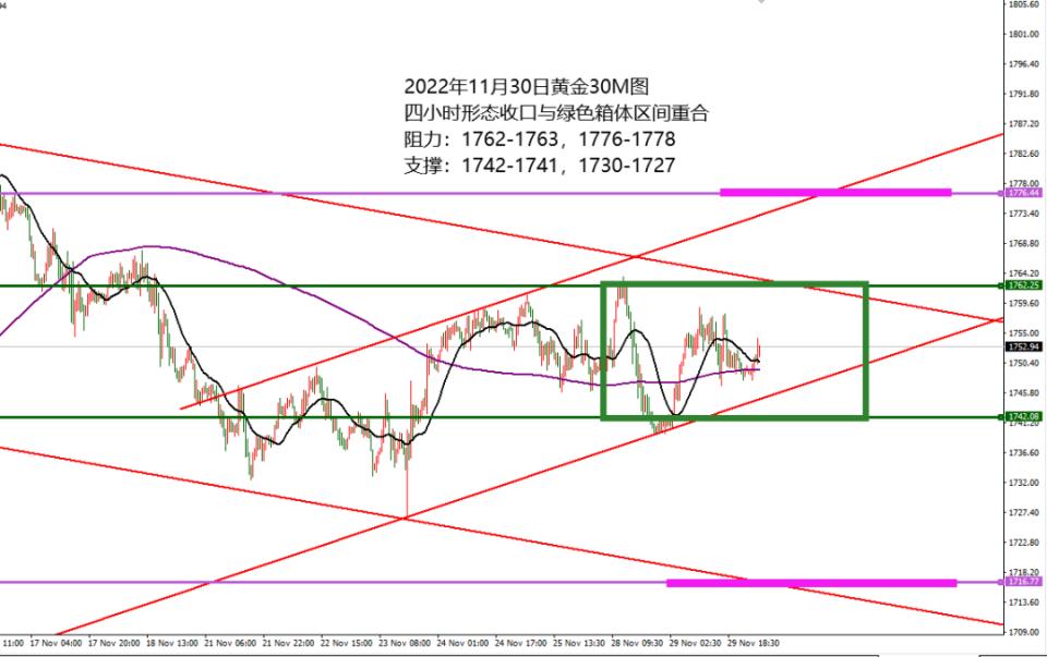 现在四小时形态持续收口,与图中的绿色箱体区间相互重合成为共同的关注点