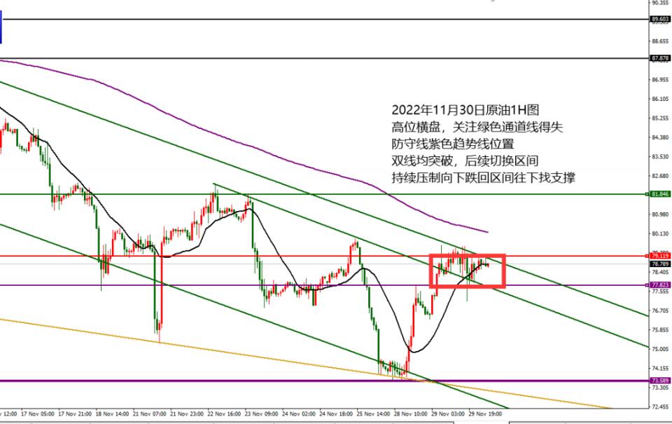 因此,对于今日的原油来说,重点关注绿色通道线上轨得失,对应关注区间79.3-77.8,突破进一步切换区间。
