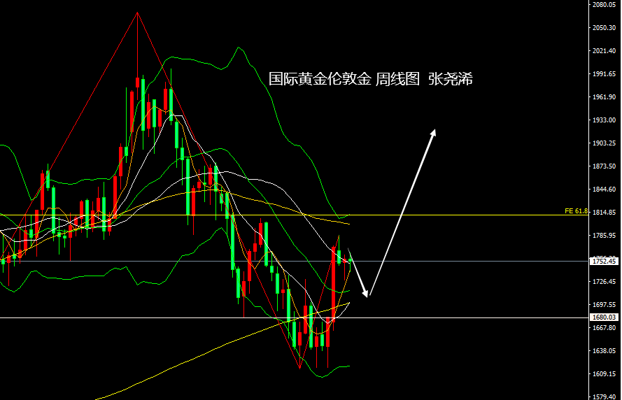 周线级别:金价前周冲高回落,上周触底回升,多空力度短线都有所出尽或观望,本周走势也维持震荡,但仍运行在5周均线上方,这则增强了后市继续看反弹的预期,也鉴于目前走势仍运行在中轨等均线上方,这暗示近期的遇阻回落也仍是回调行的修正,就算再度回落加大力度,也预计将在测试中轨或200周均线支撑位置表现触底,并再度回升走强。