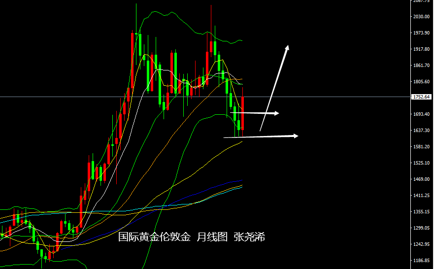技术上:月图级别,金价本月在大幅走高,一度从低点1616.49美元反弹回升,最高触及1785.91美元,振幅达近170美元,动力很强,目前虽有较明显的遇阻回落行情,但幅度来看,仍显不够,金价走势也仍保持在5月均线及前两个月的高点上方,故此行情筑底的概率很大,并且也暗示今年3月份遇阻而下的回落趋势已展现出利空出尽的信号,今日也将收取月线,大概率将保持此观点不变。