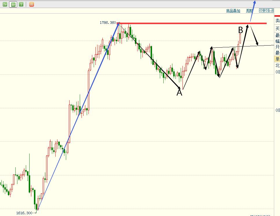 2、按照图灵波浪交易系统推演,1786~1726调整结束后,多头再次掀起浪花,目前紧盯1786的关键节点,此处上破则宣告之前的调整结束。短线从1726的上行暂定义为B浪,上破1786则宣告新的上行走势出现。