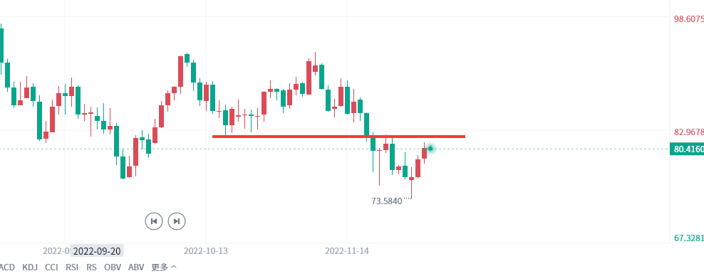 原油反弹81附近继续空,防守81.8,看80-779下方,回踩77.6附近多,防守76.8,看79-80一线