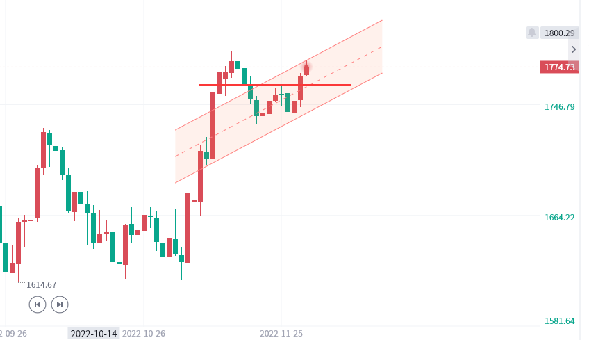 黄金回踩1768附近多,防守1760,看1780-90上方