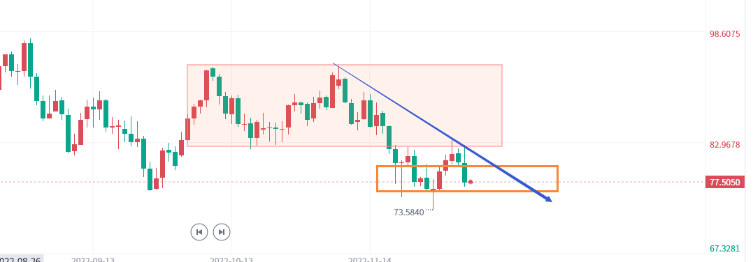 原油方面,周末OPCE+会议决定保持目前减产规模不变,没有出现前面市场炒作的加大减产规模的情况,加上欧美对俄能源价格设限形同虚设,没有造成实质上的压力,所以在供应端的担忧有所下降,反而需求端的预期持续偏弱,所以原油提示大家新一轮下行在即,上个交易日跟大家分享的82上方做空思路也是完美兑现超过50个点,短期关注反弹继续偏空的思路不变,只是大跌之后注意反复情况,不过分去追空!