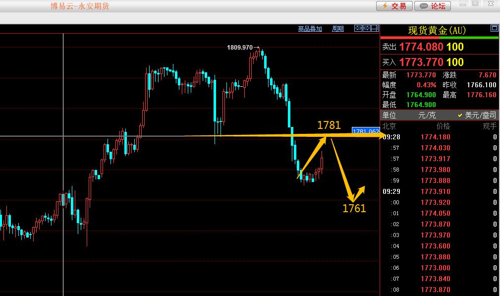 易极:黄金1797.50空单获利反弹1781继续空