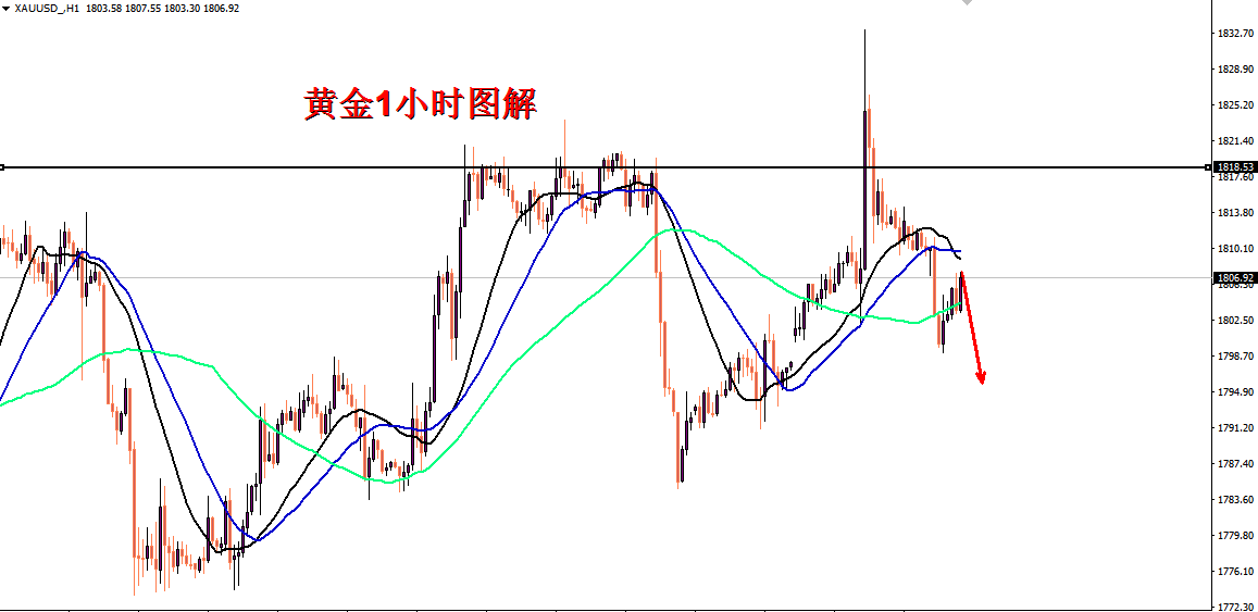 交易策略:黄金1807空,止损1815,目标1795