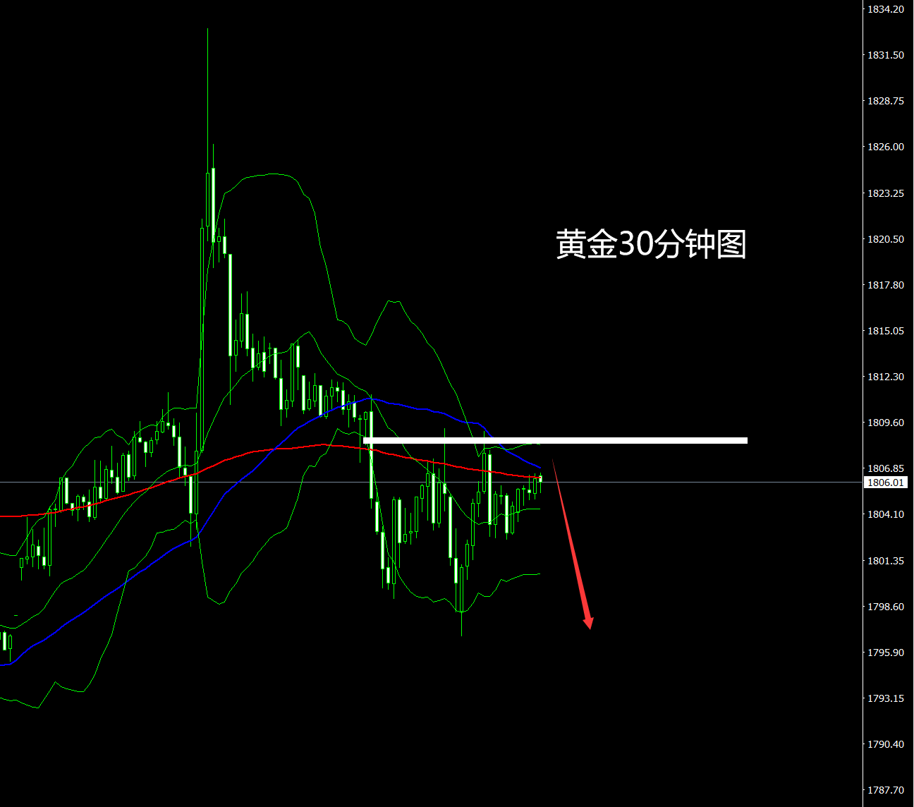 杜康:黄金下跌走势,早盘1810压力空!