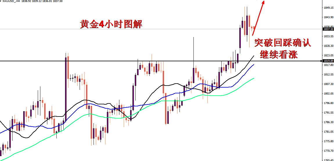 单边行情已经启动,今日金价突破1850,且站稳1850。