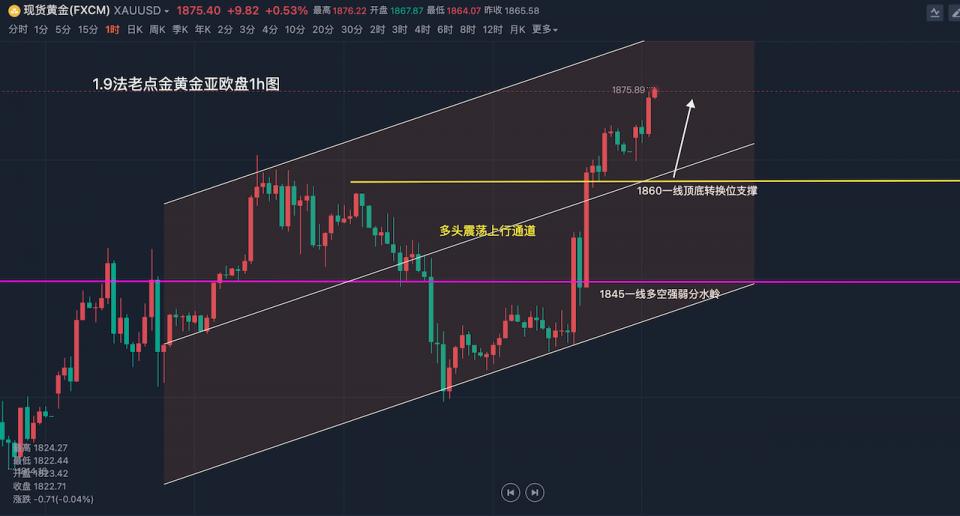 法老点金】1月9日【黄金】亚欧盘:黄金今日回踩依托1860继续先多看延续上涨