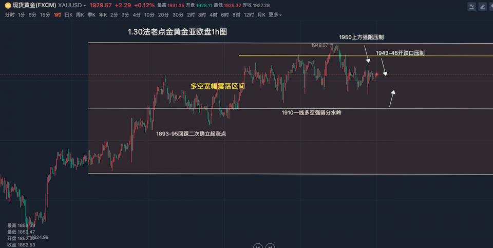 【法老点金】1月30日【黄金原油】亚欧盘:黄金今日1949下方继续看压制震荡调整