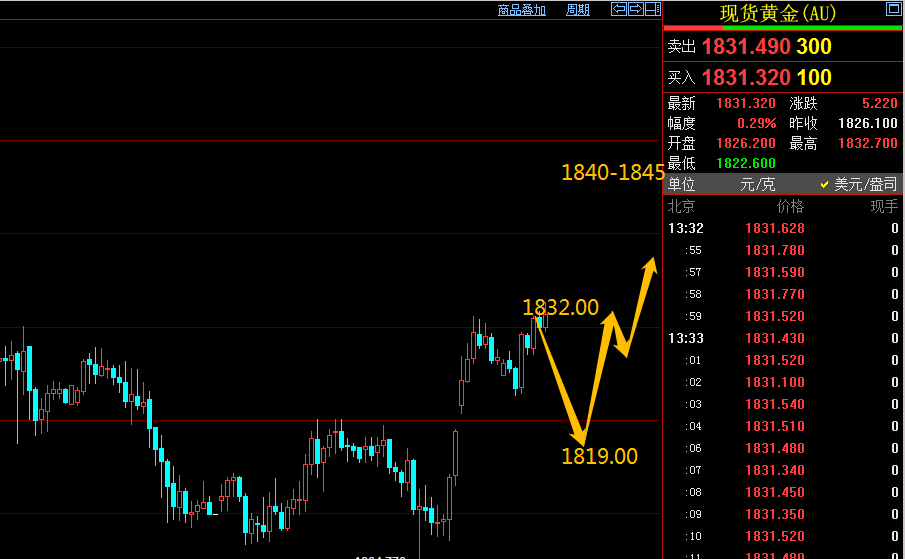 交易计划:黄金1832.00空,止损1835.00,止盈1820.00