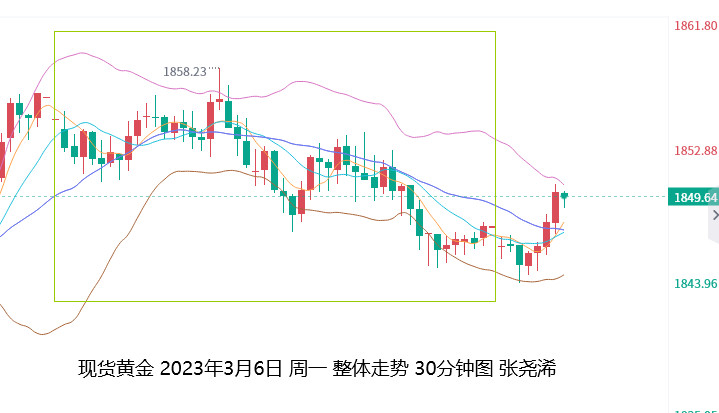 走势上,金价自亚市开于1854.71美元/盎司,因部分获利了结影响,而先行短暂走弱,但由于美元指数和美债收益率开盘趋势走低,则令其金价再度回升走强,且于亚盘尾录得日内高点1857.92美元;