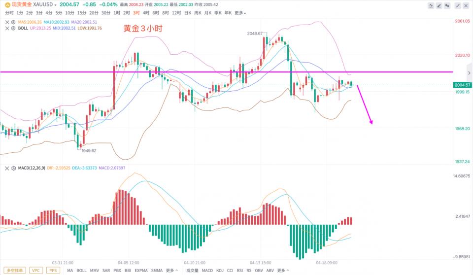 周二,金价中途过山车,并不影响触及2010上方的回落,还是以2015前高点的位置为防守点位,继续保持相对区间的震荡,目前来看利润空间不算太大,只有几美金而已,日线依托着boll中轨的位置,要谨防价格由于消息的刺激,随时来个瀑布式的暴跌,但也要注意2015位置防守的情况,说白了,就是带好止损耐心等就行了,交易又不是算卦,也不是占卜,这是基本于逻辑的判断及推理,技术与基本面的结合,今天美盘只有加拿大3月工业品物价指数,没有过于重要的数据。