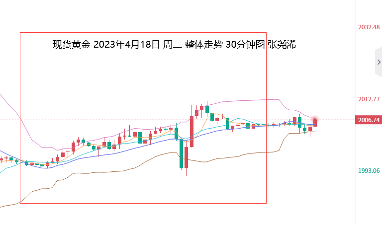 但由于数据仍低于前值,以及美国3月营建许可总数(万户)超预期的减弱,加上日图中轨的买盘支撑,另外,截至3月份,大多数美联储政策制定者认为,再加息一次就足够了,布拉德也表示同意紧缩周期可能接近尾声,这减弱了鹰派观点带来的压力,并在后市前景上,提升了看涨意愿,同时,美元指数及美债收益率仍回落收跌,则令金价又回升连续走强攀升,刷新日内高点至2011.45美元,但因短期均线的压力,而有所回撤,最终收于2005.00美元,日振幅20.22美元,收涨10.15美元,涨幅0.51%。