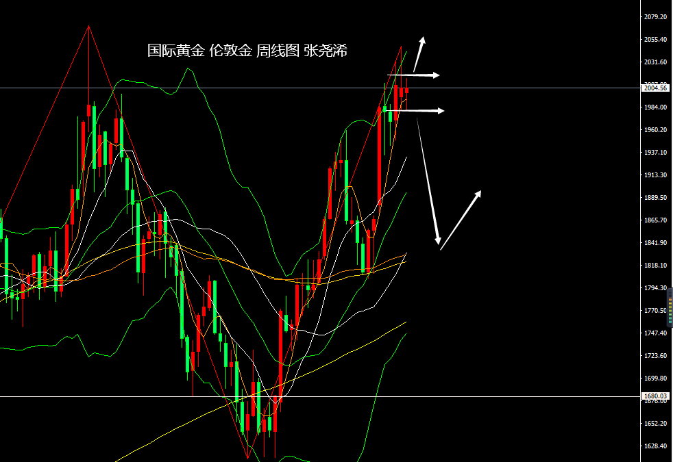 则也难再产生像前两次在2070美元上方的大幅且持续的回落行情,故此看空力度有限,因为第一次遇阻回落是疫情美国超宽松政策结束的影响,第二次是美国持续且强劲的加息压力,这次很难想会出现什么很大且持续的利空因素,所以如有回落,也都将视为入场看涨机会,故此,下方则以周图级别支撑为主,看回撤出尽,并仍可再度入场攀升等待刷新历史高点。