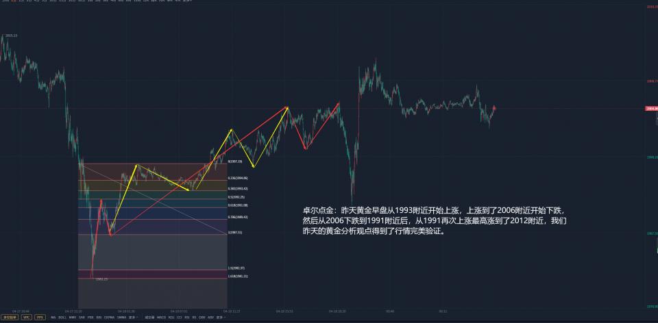 昨天我们完美拿捏了黄金走势,昨天我们视频提出黄金早盘将从1987上涨到1997这个波段的0.382位置1993附近上涨,等黄金上涨到2015下跌到1981这个波段的0.764位置2006.5附近开始下跌,当黄金从2006.5附近下跌到1991附近再次看涨。最终黄金完全验证了我们的分析观点。我们提出的2006.5附近空单成功1992获胜。1991附近多单成功2010获胜。随着昨天我们的黄金分析思路兑现,今天黄金怎么看?以下是我们的独家分析观点。