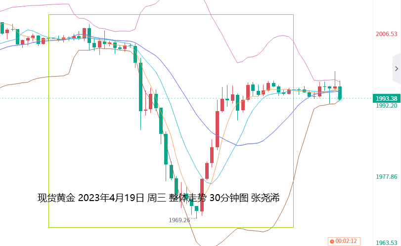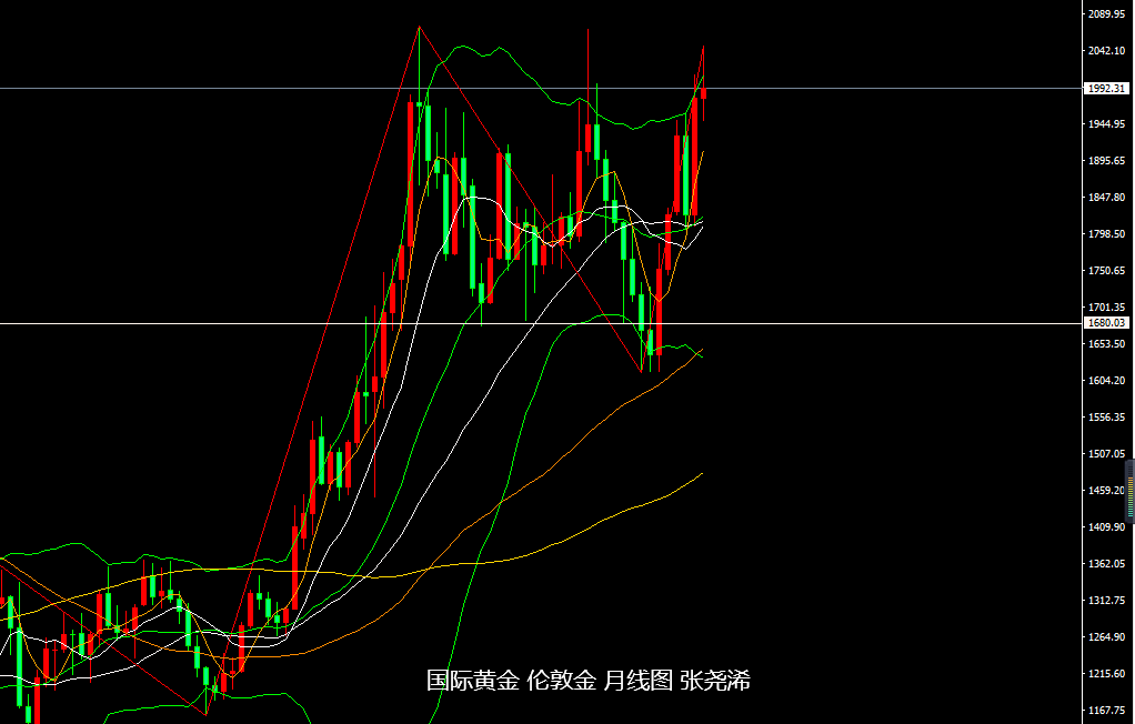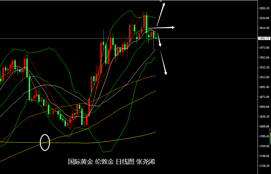 但欧盘开盘后,空头再度发力,持续回落,于欧盘尾19点半录得日内低点1969.04美元,之后则触底回升,连续反弹,最后至1994美元附近一线窄幅盘整,最终收于1994.59美元,日振幅38.93美元,收跌10.43美元,跌幅0.52%。