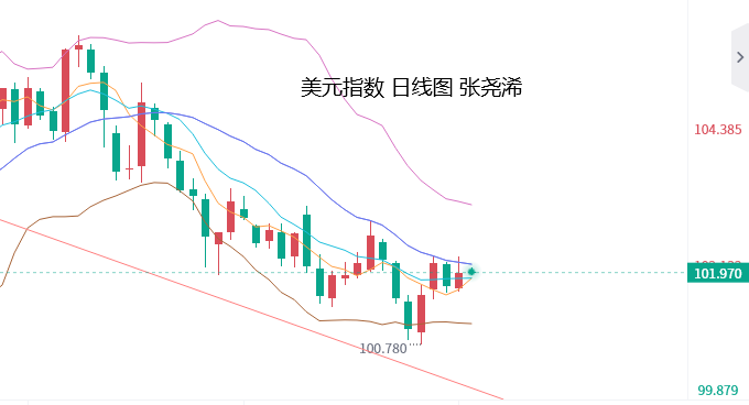 最后,美盘时段,金价则展开连续回升并持稳收线,美元指数冲高回落,未能站稳102关口,美国10年期国债收益率从高回落倒垂收线,则限制了金价回落动力,并提振金价V型回升。