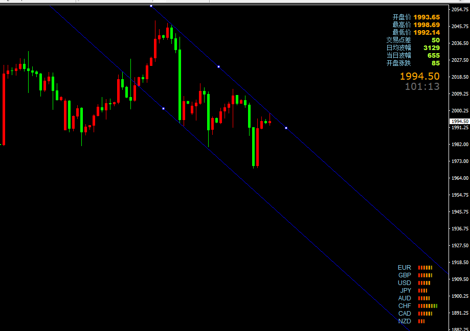 黄金走势上看,上个交易日早盘2008一线震荡回落,欧盘跌破1990加速下行一度触及1969一线,初步是跌破了1980附近强支撑,然后快速拉伸晚间一度触及1996一线,日线报收一根带较长下影线的小阴线,短期来看强支撑破位,然后再度暴力洗盘,后续还有下行空间,反弹继续做空即可,只要不过分去追空就行!