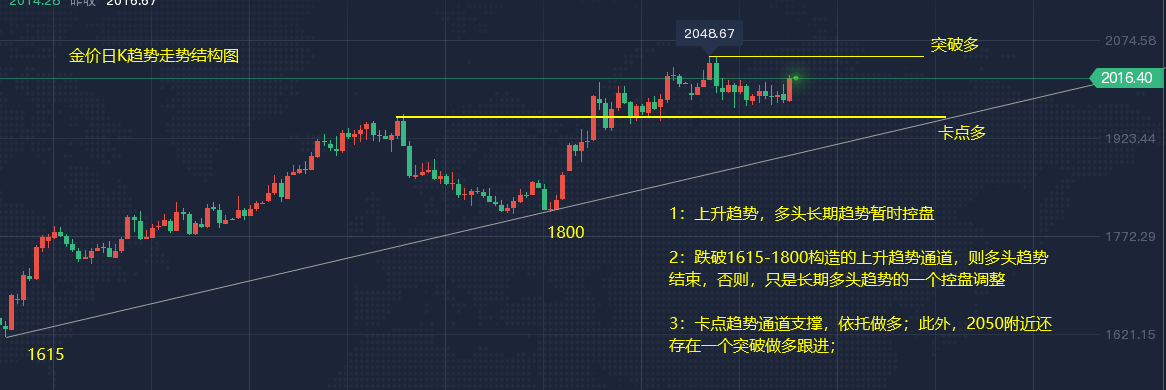 2:趋势上,继续按照日K的上升趋势处理;依旧是多头趋势控盘为主走势;