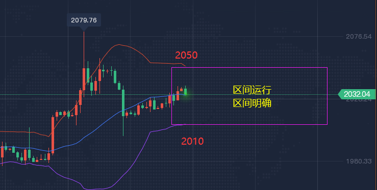 1:短线上,暂时继续按照4小时的区间处理;今日的区间收缩成为2010-2050的这个区间;中轨道2032-2030这里;BOLL走平,区间定位为主。