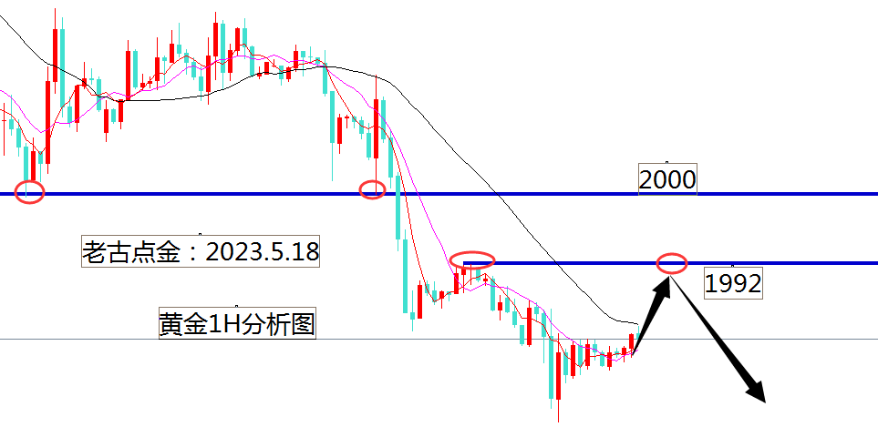 现在黄金行情其实非常明朗,昨天日线再次收阴,空头没有出现大的反弹,而是小反弹后继续下滑,最低触及到了1974附近,从日线形态来看这波下跌已经触及到了之前的大底部,一旦1970这个位置被跌破将会打开周线级的大跌空间,不过老古认为多空会在这个位置进行一波博弈,然后刺破1970,我们猜测底部,虽然1970是强支撑,但它不等于是底部,做空仍然是我们主旋律,昨天我们在1989和1984两次做空,我们已连续一周多都没有做过一次多单一直在做空黄金,老古一直坚持黄金空头,今天我们会考虑1992附近的压制继续空。