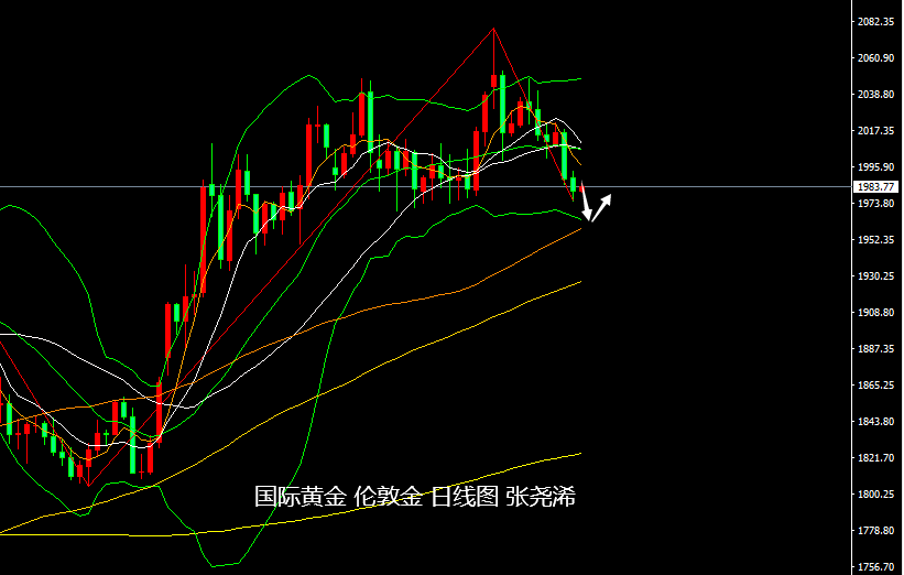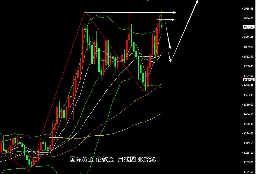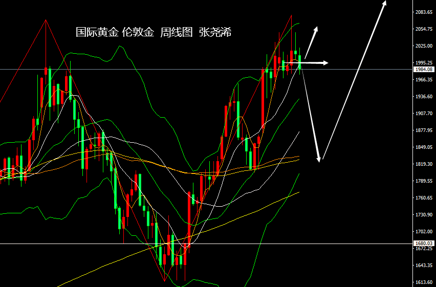 重点留意本月收线情况,如仍收线在2050美元下方,则后市将继续保持看空回调为主,等待触及10月均线或60月均线触及之后再去看涨攀升;