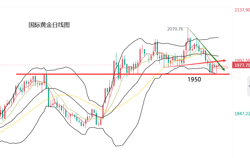 昨日周二黄力晨认为,美联储释放鹰派信号,以及债务上限谈判取得进展,对黄金构成压力,金价承压下探,需要密切关注1950到1960美元这一区域的支撑情况,操作上建议大家下方关注1950美元,可以尝试逢低布局短线多单,金价向下突破,将加大短线下跌风险,上方压力关注1970美元,金价试探这里可能遇阻回落,向上突破将缓解短期下跌风险。
