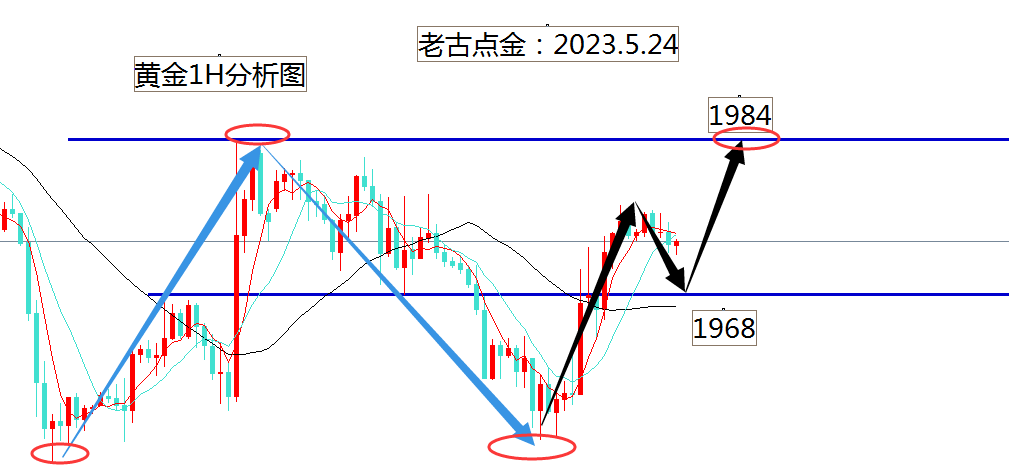 黄金--价格在1970附近多,目标1984、1996