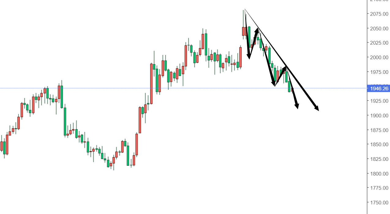 今天还是老样子,大多数空头都不好寻找看跌信号,更多人会把它放在1950,因为昨晚50刚刚失守,再次反抽是能当作压力位看待的,这个想法我认为没问题,因为早盘黄金的确反弹了一波1949,先给你们说,我已经再度进场了,目前三笔交易在手。