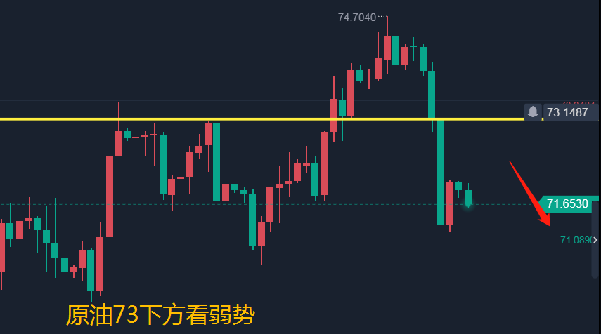 原油昨天整体走势很弱,呈现一个慢跌走势,虽然中途有反弹,但力度不大,慢跌下破了72.6,那么行情就是弱势。日线上油价跌破均线支撑,上方压力位置关注72.4和72.9,这是重要的阻力,日内大家可以在72.4和72.9分批空,损73.4,看71-70.如果此单止损,那么行情会慢涨,原油就是一个多空切换的行情。