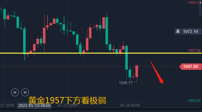黄金昨天整体走势很弱,亚欧盘在震荡之后并没有上破凌晨反抽的高点1965出现回落,那么行情就是一个极弱,晚间在消息面的刺激下迎来下破暴跌,随后反弹试探顶底转换的位置1954之后延续下跌,我们白盘观望,晚间在1953做空获利1945!日线上收取一根大阴,布林带开口,均线空头排列,那么日内肯定是要继续反弹做空。上方强压力位于日线的MA5位置,也是上方的阻力位置1956,这将是日内重要的做空点位,但悬壶不希望给到此点为,毕竟反弹的力度过大,对于延续下跌不是好事,而金价最后一次反抽的高点在1953附近,这将是日内的第一做空点位,而这里也是H4的MA10位置,如果上破的话,行情就是一个震荡了,对于新低今天就不要看了,所以交易上思路要清晰,也要分析清楚行情的强弱来看利润的大小。