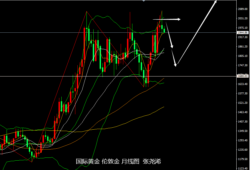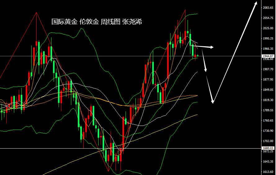 黄金市场上周:国际黄金/伦敦金冲高回落,虽再回落趋势中收取较长的上影线倒垂形态,有一定的止跌迹象,但根据月线的的回撤力度看,后市仍具有看跌预期,走势或偏震荡及仍将再度走低。
