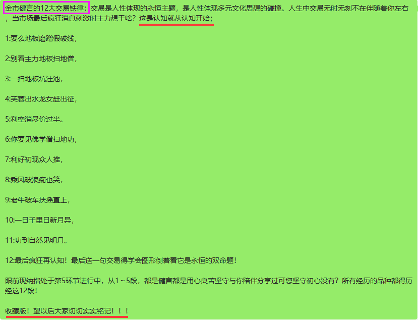回头再看纳指本来送于机构的图表,健言今天告诉您已指导他们五个机构15年有余,从去年12月默默做扫地僧建仓在10450~10700一带的3%仓位入手,到龙女出水的11000加仓到6%,从图表4.1日送于各位时的时刻12500左右,送您最真诚的礼物纳指处于第五阶段这句话,到上周的已越至第七阶段!您还想要什么样的高度技术体现,但我送您一句健言永远不是您多得哪位高级分析师,市场波澜壮宽,看您能抵御持久……