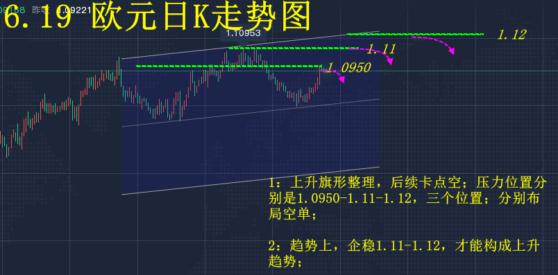 刚才解读到,欧美的4小时是不规则的走势,因此,比较难卡位置。因为不规则的结构的原因;压力位置1.10-1.11-1.12这些位置;因此,卡点去沽空。第一个压力位置1.10,其次是1.11,然后是1.12的位置;