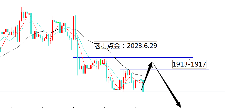 昨天的黄金全天波动比较小,整体还是一个小区间震荡,主要是因为价格触及到了周线的强支撑1900,这个位置是空头的禁区,昨天的反弹力度来看不大,属于正常的技术性反弹,最终日线还是收小小的阴线,看跌思路不用改变,小的震荡和小修复是无法改变大的空头趋势的,反弹继续空吧,强压力今天已经下到了1913-1317一带,今天的思路依托这个位置搞空看破1900。就昨天的反弹力度来看,老古预估今天会下破1900的强支撑。这周的空头还没有发挥出它的魔力,如果下破1900后空头将会加速度跌。